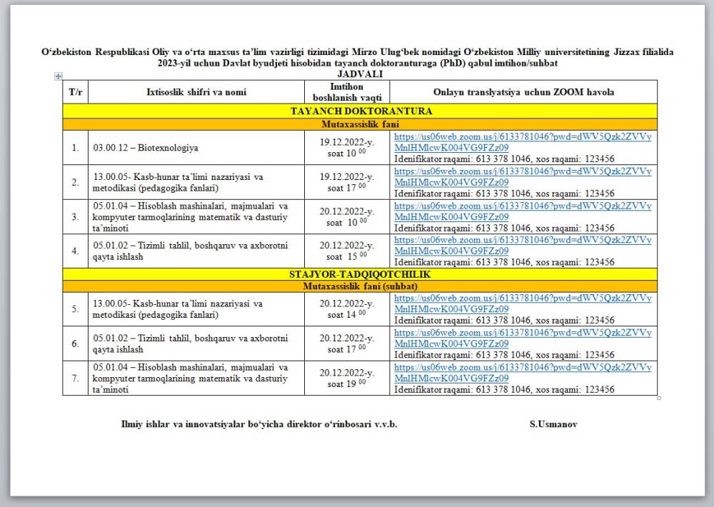 MIRZO ULUG‘BEK NOMIDAGI O‘ZBEKISTON MILLIY UNIVERSITETI JIZZAX FILIALI