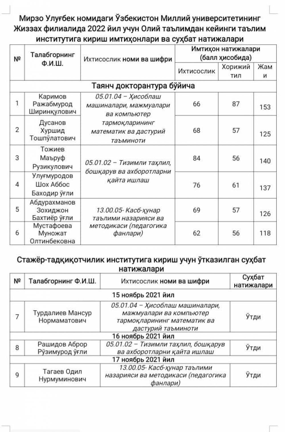MIRZO ULUG‘BEK NOMIDAGI O‘ZBEKISTON MILLIY UNIVERSITETI JIZZAX FILIALI