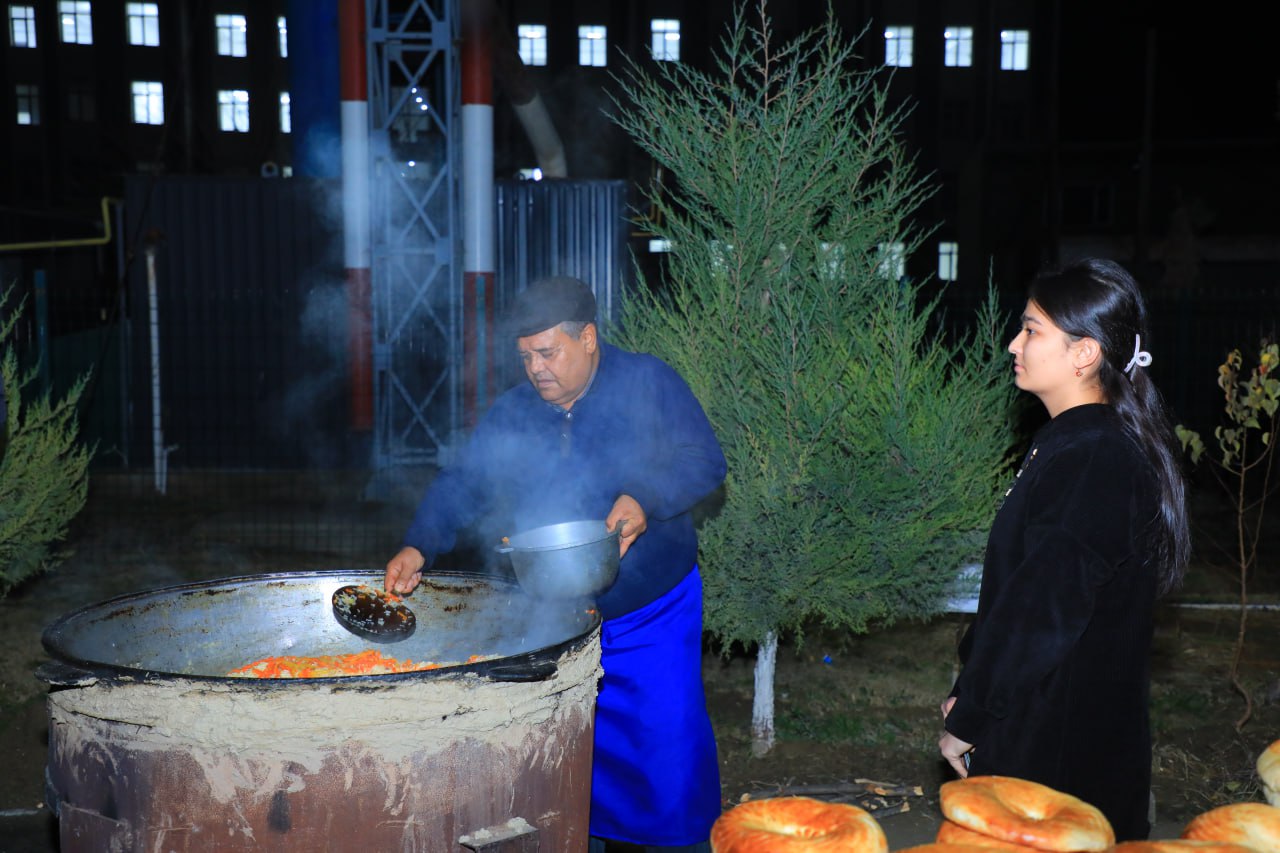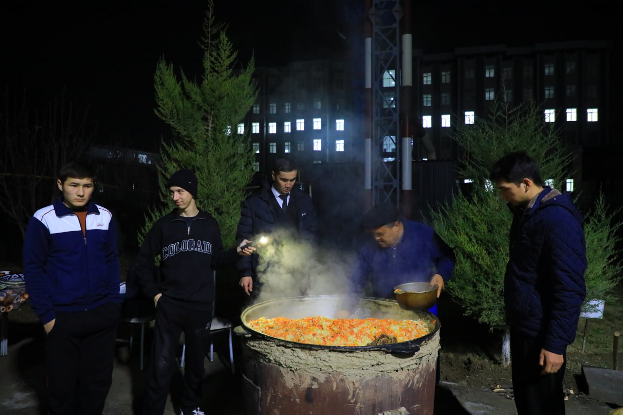 Shundan so‘ng, mehmondo‘stlik ramzi sifatida dasturxon yozilib, osh damlandi. Tayyor taom TTJda istiqomat qiluvchi barcha talabalarga tarqatildi. Ushbu ezgu tashabbus talabalar kayfiyatini ko‘tarish, ularning ijtimoiy faolligini rivojlantirish va mehr-oqibat muhitini mustahkamlashga xizmat qildi.