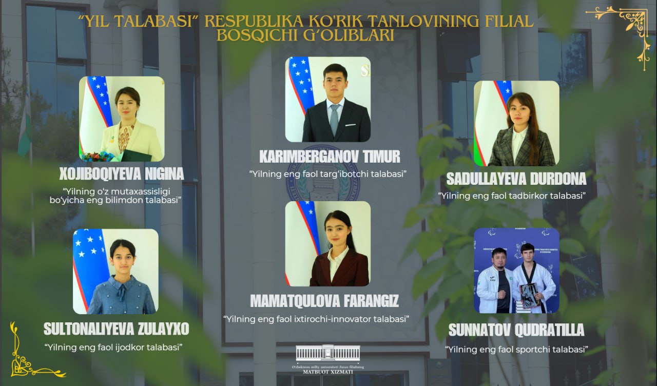#Yil_talabasi #g'oliblar 📚 “Yil talabasi” respublika ko'rik tanlovining filial bosqichi g‘oliblari bilan tanishing !!! ▫️Bizni kuzatib ......